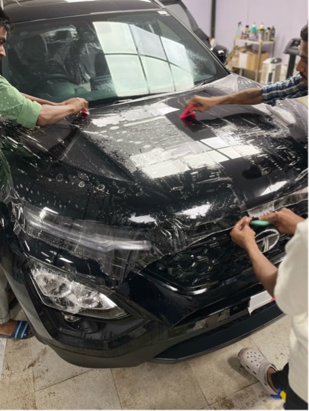 Car paint protection film (PPF) is a transparent, ultra-thin layer of polyurethane material that is applied to the exterior surfaces of a vehicle to protect the paint from scratches, stone chips, and other damage. The PPF acts as a sacrificial layer, absorbing the impact of road debris and preventing it from affecting the underlying paint. It is self-healing, meaning that minor scratches and swirl marks on the film can disappear with heat or time. PPF is optically clear and does not alter the appearance of the vehicle. It provides excellent UV resistance, preventing the paint from fading or discoloring over time. The film is also resistant to staining from bird droppings, bug splatter, and other contaminants, making it easy to clean and maintain the car's exterior. With its high durability and protective properties, car PPF coating is a popular choice for maintaining the pristine appearance of vehicles and preserving their resale value. Life - 3 Years TPU - Self Healing Thickness - 190 Microns For more details about material kindly call or WhatsApp us ! Price may vary depending upon car size and warranty period ! Choose best choose right with #the96kautocare #paintprotectionfilm